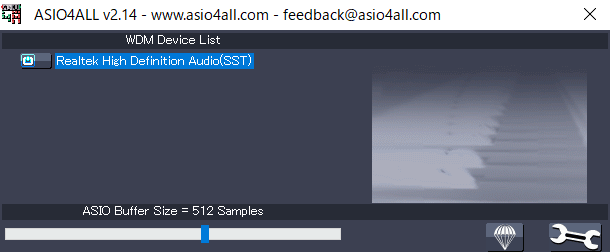 ちなみにイヤホンジャックに挿した有線ヘッドセットの設定も試みましたが、どういう組み合わせでやってもASIO設定のDevice Listでヘッドセット入力デバイスが有効にならず、今回は断念しました。